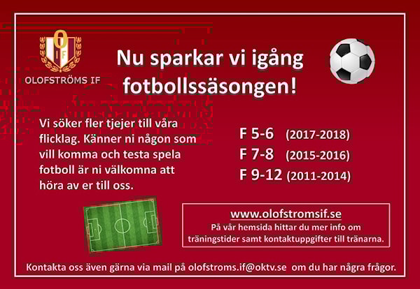 Det går även bra att maila oss på olofstroms.if@oktv.se